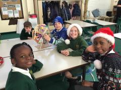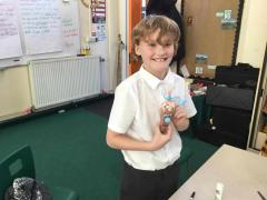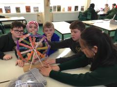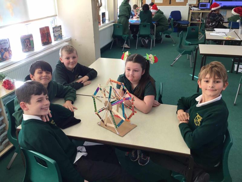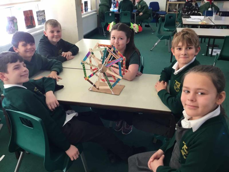 In DT this term year 5 have been designing and making mechanisms – we made pulley-operated Ferris wheels. We researched the uses of pulleys and found that there was three purposes: to raise a load, to lower a load and to rotate an object. We used this third purpose to design our Ferris wheels. We made braces to support the wheels and attached a simple pulley to rotate the wheel. We evaluated our creations by stating the things that went well and some things we would do differently if we were to do it again.